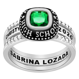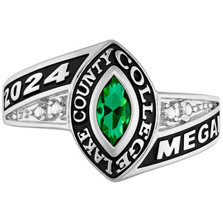 Ladies' Silver Plated CZ Encrusted Traditional Personalized Class Ring