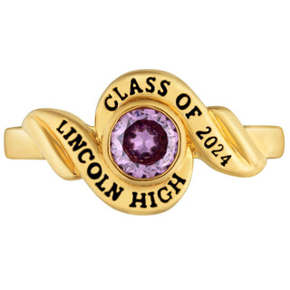 Ladies' 14k Gold Plated Swirl Bypass Round Birthstone Class Ring