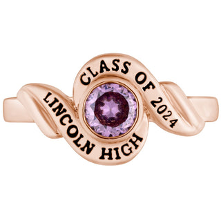 Ladies' 14k Rose Gold Plated Swirl Bypass Round Birthstone Class Ring
