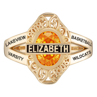 Ladies Yellow CELEBRIUM Fancy Scroll Birthstone Class Ring