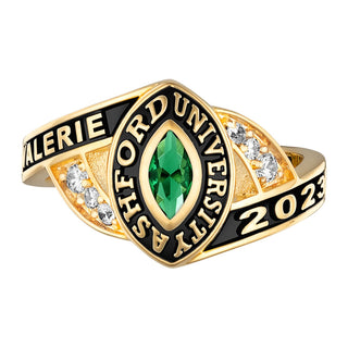 Ladies' 14K Gold Plated CZ Encrusted Traditional Personalized Class Ring
