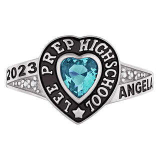 Ladies' Sterling Silver Traditional Heart Birthstone with CZ Accents Class Ring