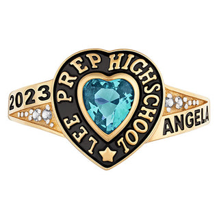 Ladies' Celebrium Traditional Heart Birthstone with CZ Accents Class Ring