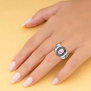Ladies' Celebrium Oval Birthstone with CZ Flowers Class Ring