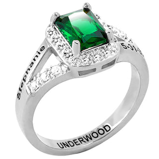 Ladies' Sterling Silver Emerald Cut Birthstone with CZ Freestyle Class Ring