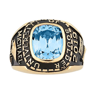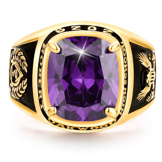 Men's 14K Gold Plated Cushion Birthstone & CZ Class Ring