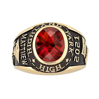 Men's 14K Gold over Sterling Traditional Oval Checkerboard Birthstone Class Ring