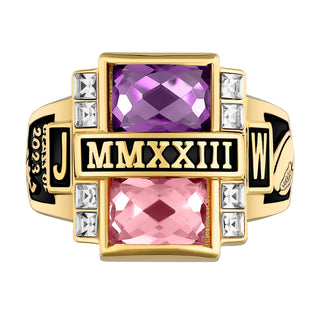 Men's 14K Gold Plated Double Birthstone & CZ Rectangle Class Ring