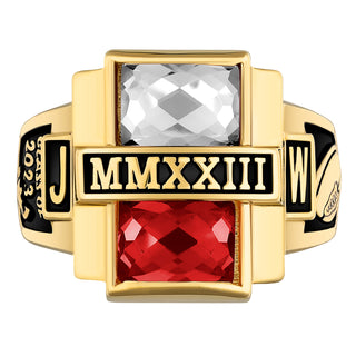 Men's 14K Gold Plated Double Birthstone Rectangle Class Ring