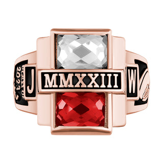 Men's 14K Rose Gold over Sterling Double Birthstone & CZ Rectangle Class Ring