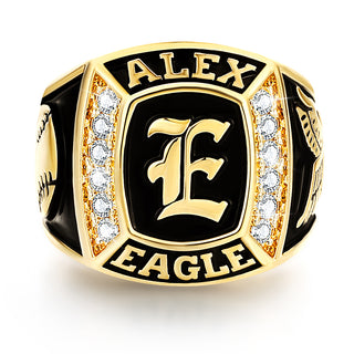 Men's 14K Gold Plated CZ Multiple Graphics Traditional Birthstone Class Ring