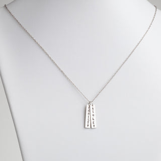 Sterling Silver Family, Couples or Sisters Engraved Name Bar Necklace - 2 Names
