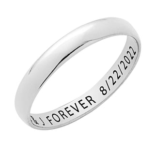 Platinum over Sterling Inside Engraved Slim Wedding Band (3mm)
