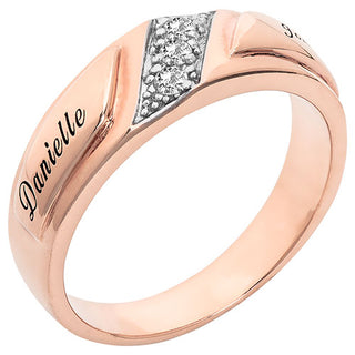 14K Rose Gold over Sterling Ladies White Topaz Engraved Wedding Band