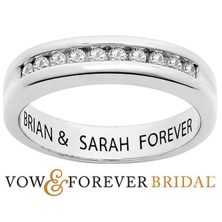 Platinum over Sterling Engraved White Topaz Wedding Band