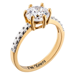 Gold over Sterling Brillant White Topaz Open Heart Engraved Wedding Ring