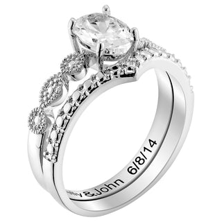 Silver Plated Oval Stone 2 Piece Wedding Ring Set