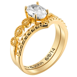 14K Gold Plated Oval Stone 2 Piece Wedding Ring Set