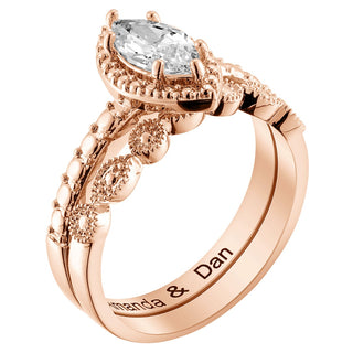 14K Rose Gold Plated Marquise Stone 2 Piece Wedding Ring Set