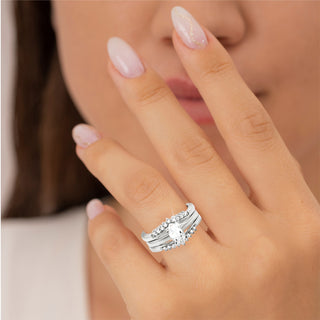 Silver Plated Marquise Stone 2 Piece Wedding Ring Set