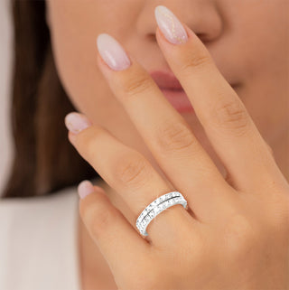 Platinum over Sterling White Topaz Eternity Band - 2pc Set