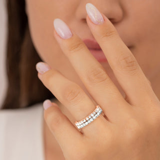 Platinum and Rose Gold over Sterling White Topaz Eternity Band - 2pc Set