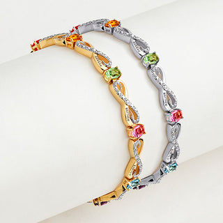 Two Tone Family Name and Birthstone Diamond Accent Infinity Bracelet