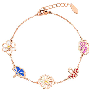 Rose Gold Plated Enamel Birthmonth Flower Station Bracelet