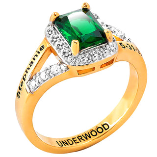 Ladies' 14K Gold over Sterling Emerald Cut Birthstone with CZ Freestyle Class Ring
