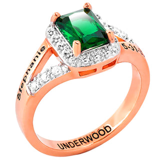 Ladies' 14K Rose Gold over Sterling Emerald Cut Birthstone with CZ Freestyle Class Ring
