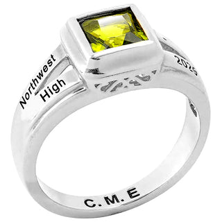 Ladies' Sterling Silver Princess Cut Birthstone Freestyle Class Ring