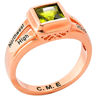 Ladies' 14K Rose Gold over Sterling Princess Cut Birthstone Freestyle Class Ring
