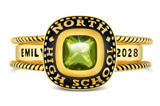 Ladies' 14K Gold Plated Traditional Cushion Birthstone Class Ring