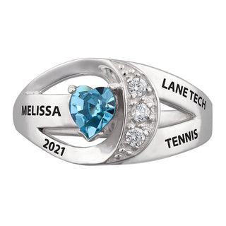 Sterling Silver Freestyle Heart Birthstone Class Ring with CZ