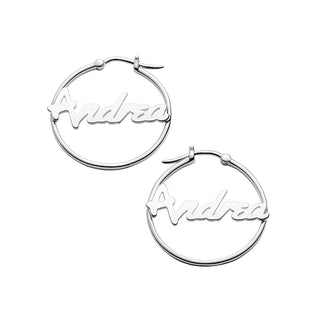 Sterling Silver Script Name Diamond Cut Large Hoop Earrings