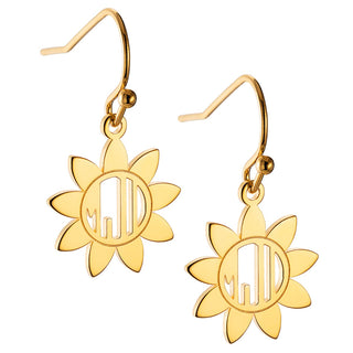 14K Gold Plated Script Name Heart with Circle Dangle Earrings