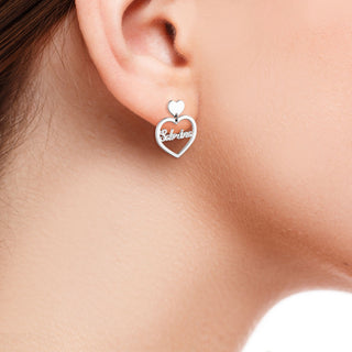 Silver Plated Personalized Script Nameplate Large Heart Hoop Earrings