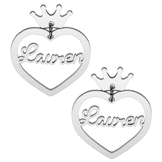 14K Gold Plated Script Name Heart with Crown Dangle Earrings