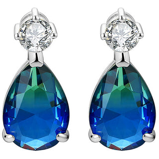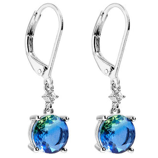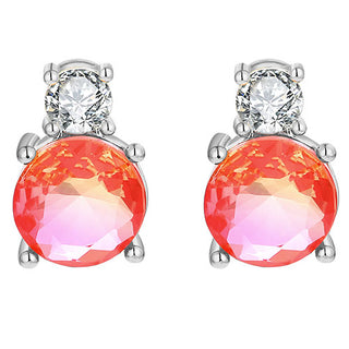 Iridescent Round Iridescent Stone with CZ Accent Button Earrings