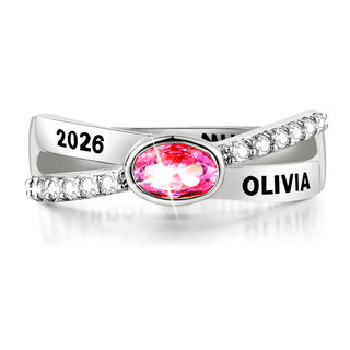 Ladies Platinum Plated Crossover Oval Birthstone Fashion Freestyle Class Ring
