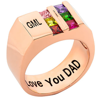 14K Rose Gold over Sterling Engraved Double Row Birthstones Signet Ring