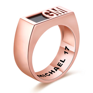 Men's Rose Gold over Sterling Modern Monogram Signet Opaque Stone Ring