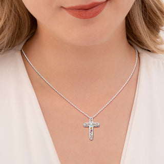 Sterling Silver Mother's Birthstone Heart Cross Necklace