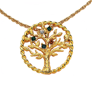 14K Gold over Sterling MOM Family Birthstone Tree Pendant