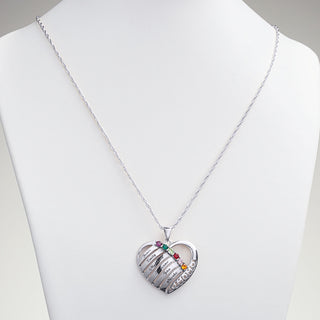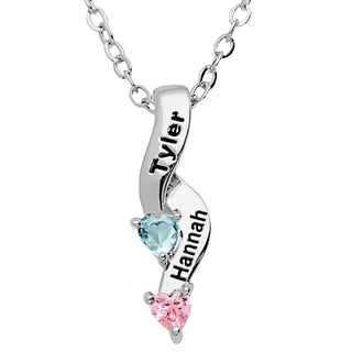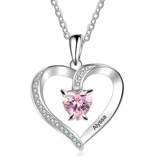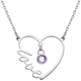 Silver Plated CZ Heart Engraved Birthstone Necklace