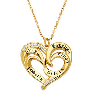 14K Gold Plated 3D Family Filigree Heart Pendant