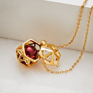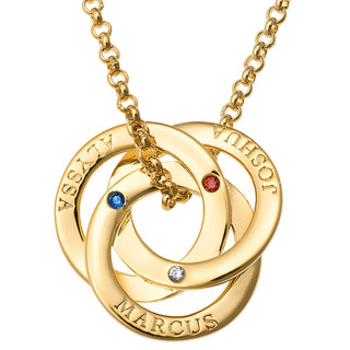 14K Gold Plated Interlocking Rings with Birthstones Name Necklace