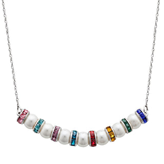 Family Birthstone Crystals and White Shell Pearl Necklace