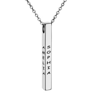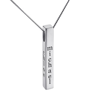 Sterling Silver Vertical 4-Sided Engraved Family Name Pendant