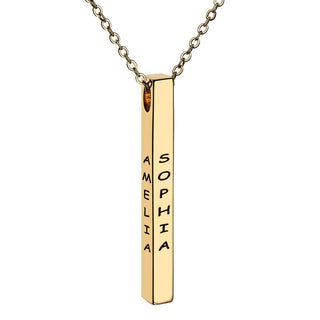 14K Gold Plated Vertical 4-Sided Engraved Family Name Necklace